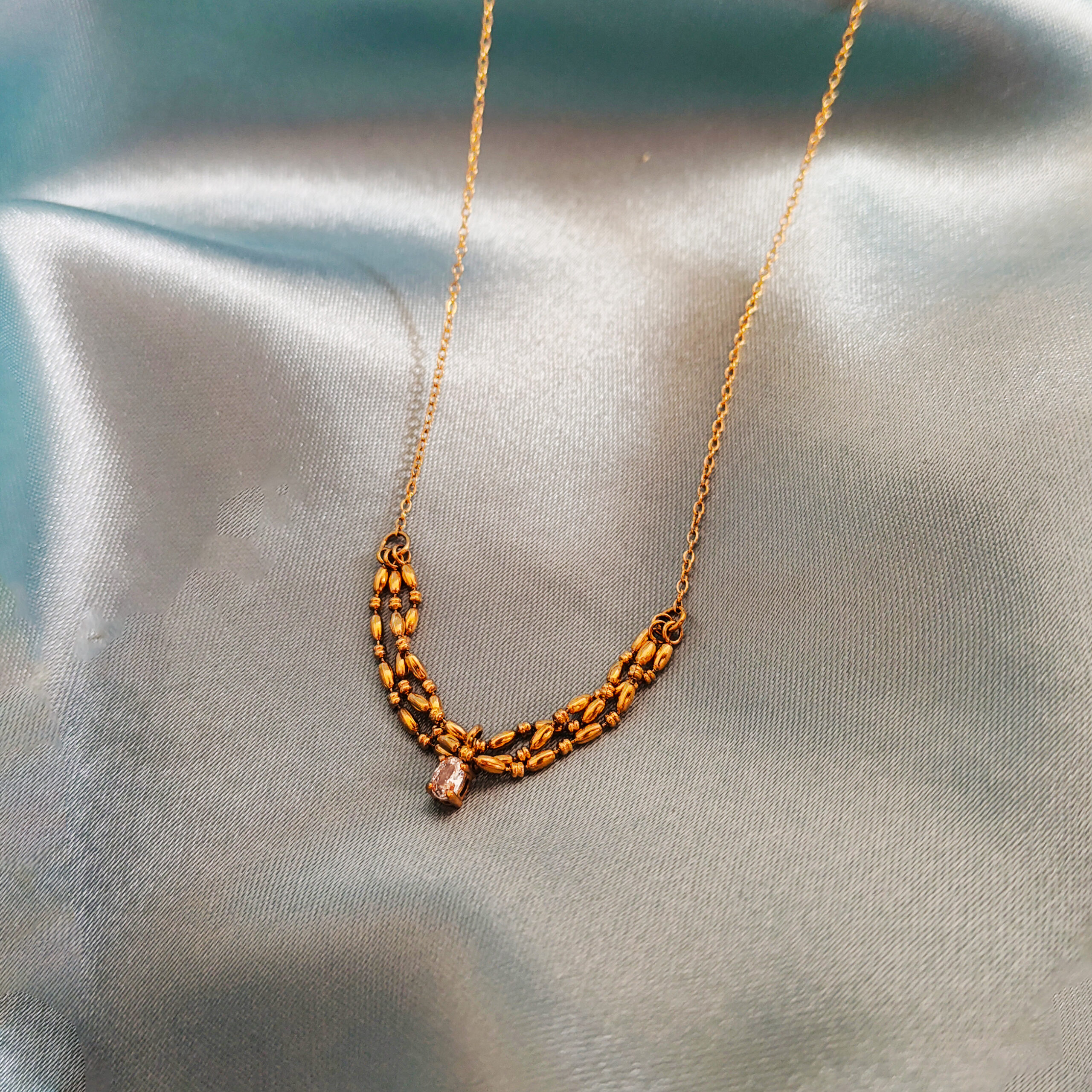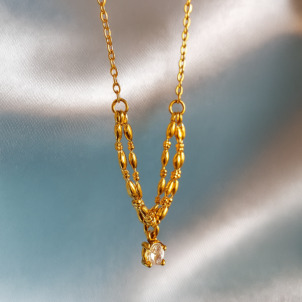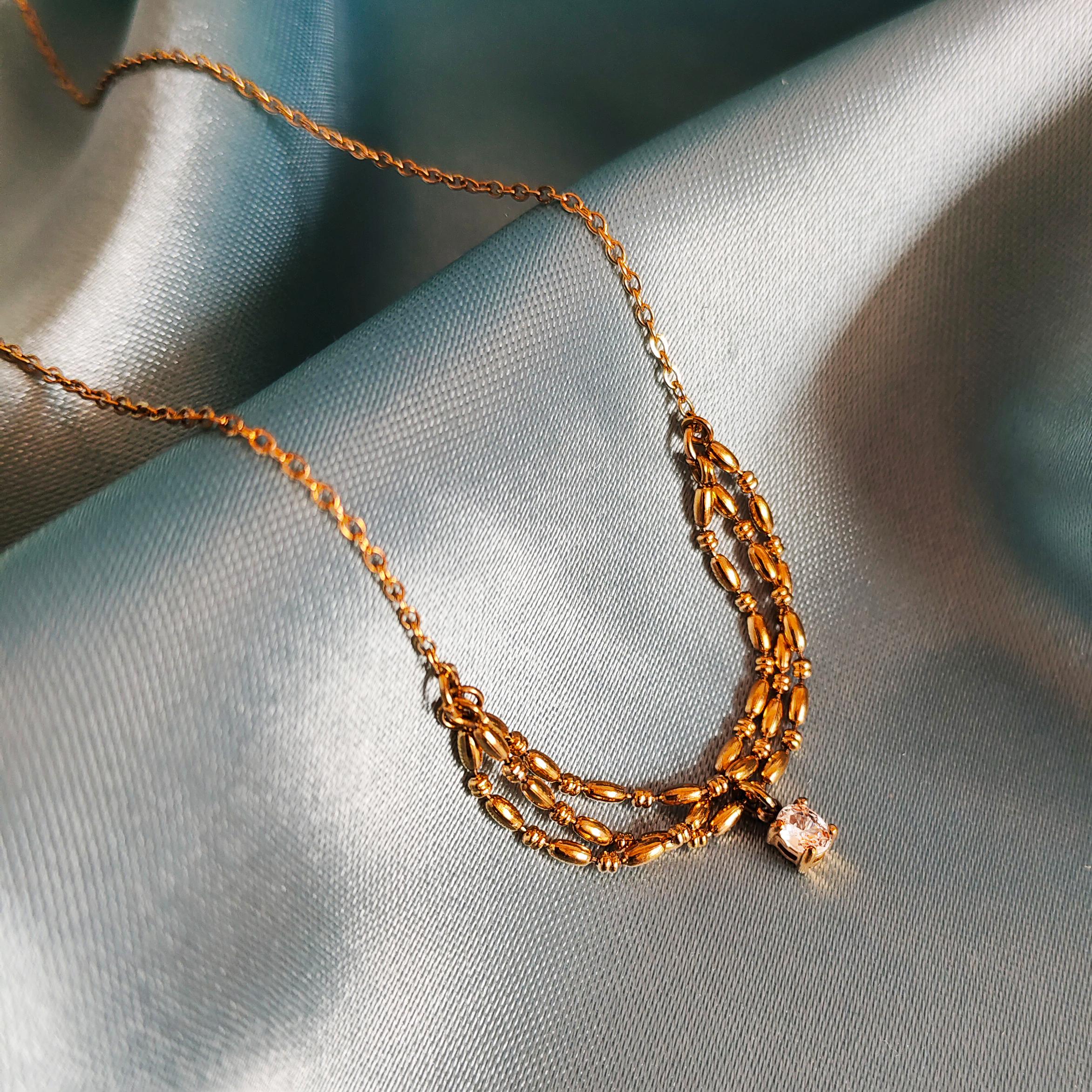 Arc of Elegance is designed to turn heads with its bold, chunky arc centerpiece that exudes confidence and luxury. The solitaire pendant adds a delicate touch of brilliance, making this necklace both striking and graceful. Perfect for occasions where you want to make an impression, this piece balances timeless charm with a contemporary edge. Crafted with care, it offers durability and a long-lasting gold-plated finish for years of effortless elegance.