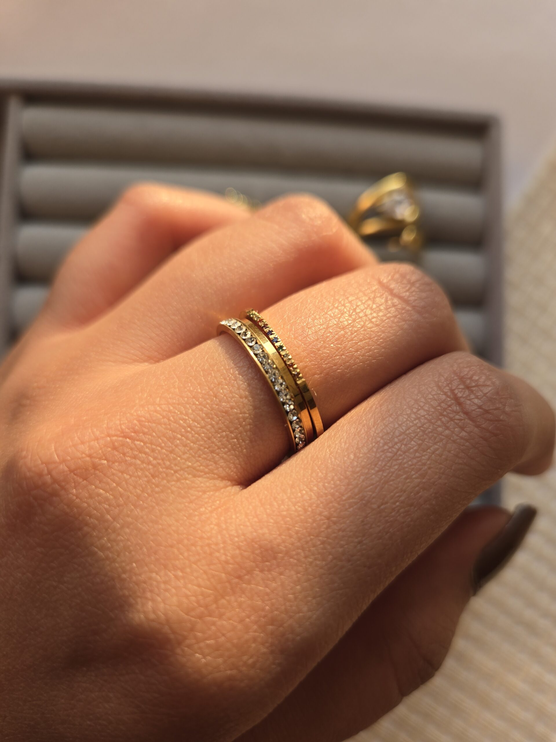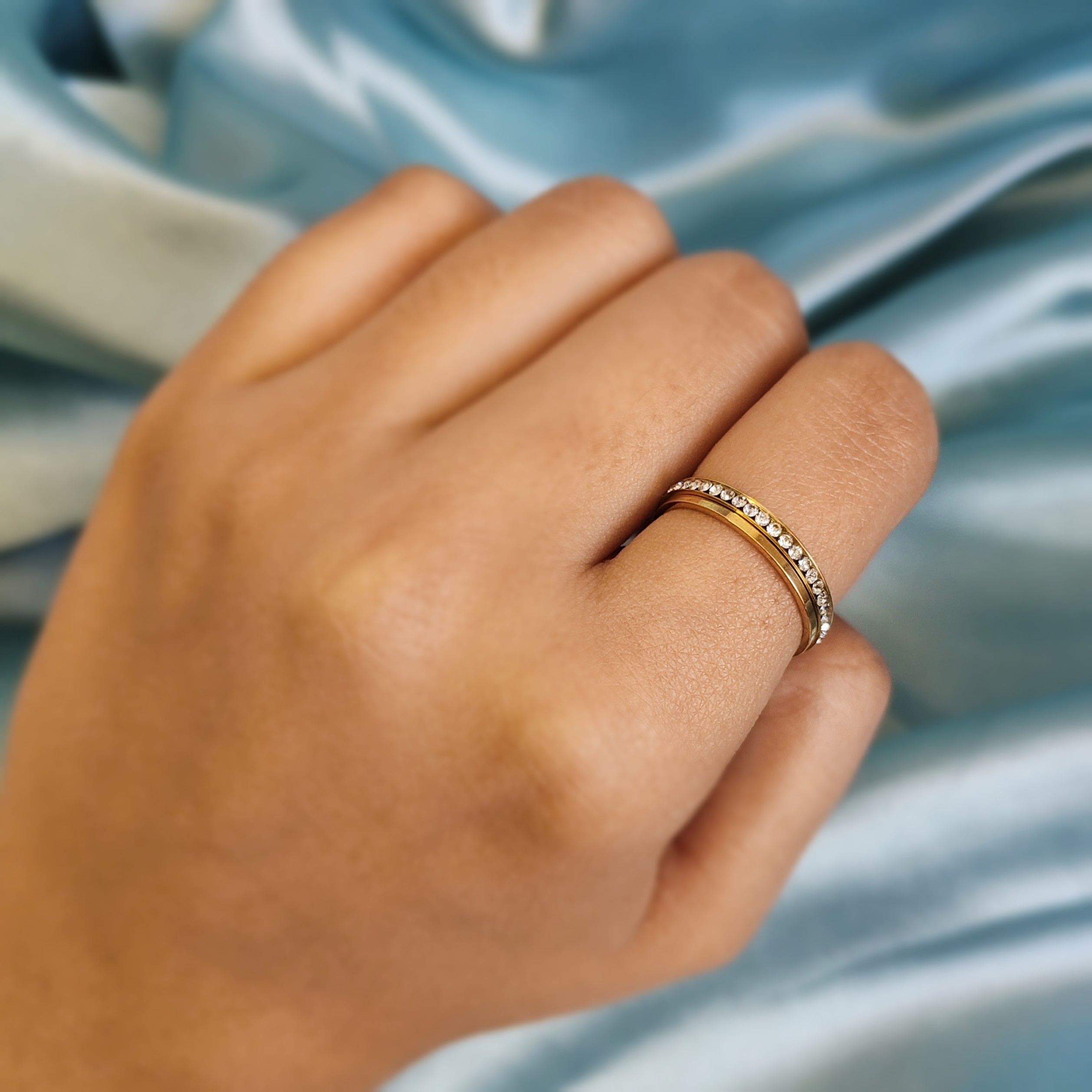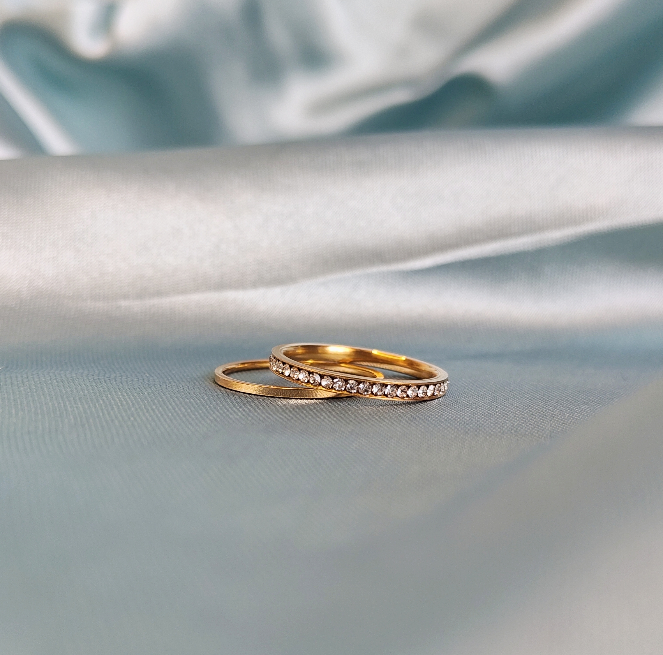 A versatile and classic staple, this anti-tarnish gold-plated band is the perfect everyday piece or stacking to add that extra bling to your rings. Its sleek, minimalist design makes it ideal for stacking or wearing solo, adding a touch of understated elegance to any look.