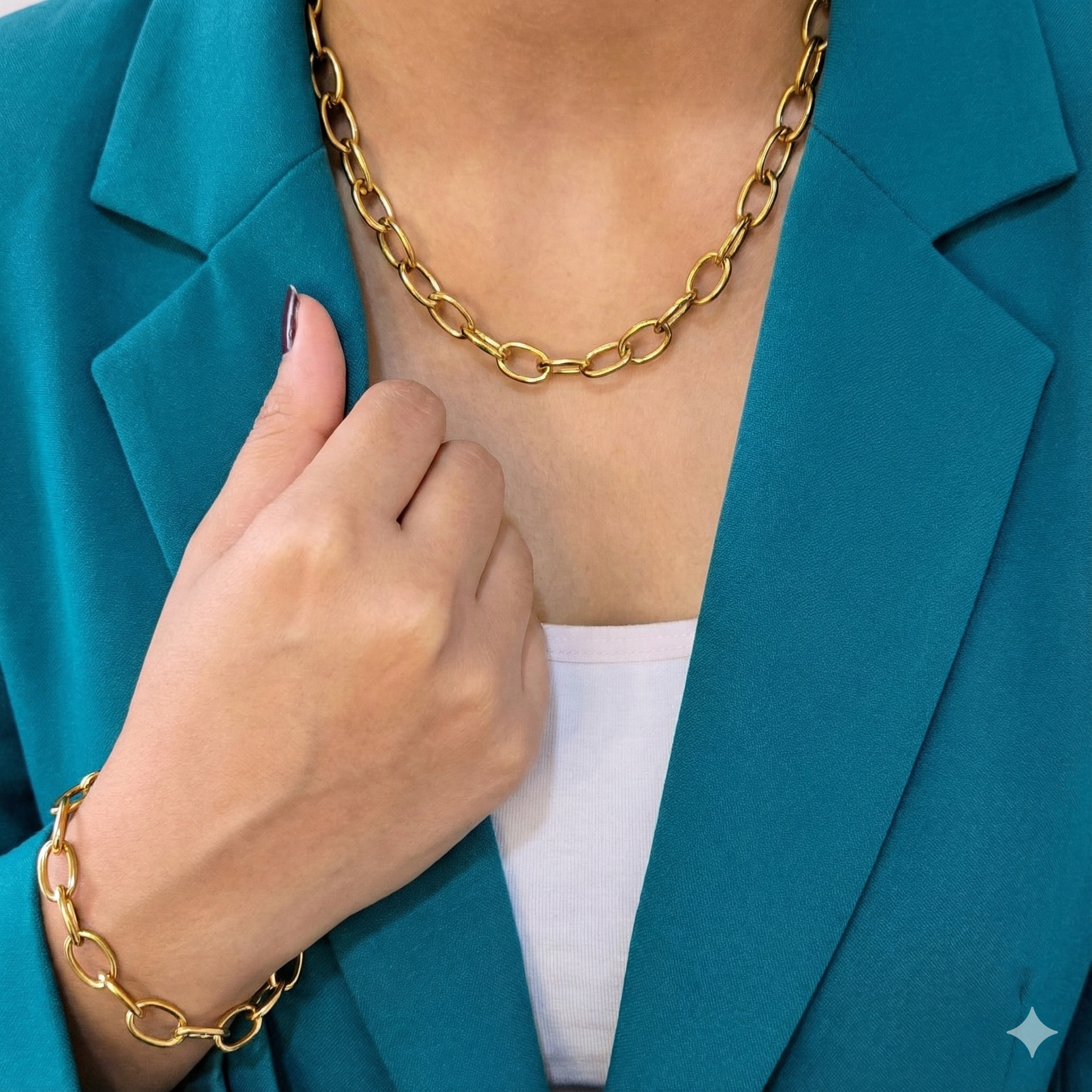 A chic oval-link chain designed to add effortless boldness to any outfit. Perfect as a standalone statement or layered with your favorite pieces.