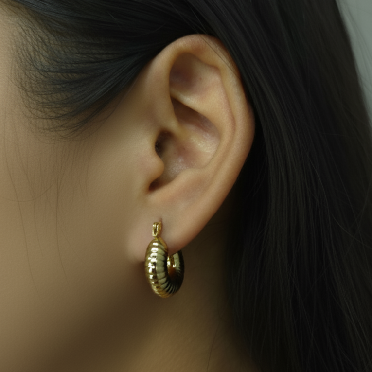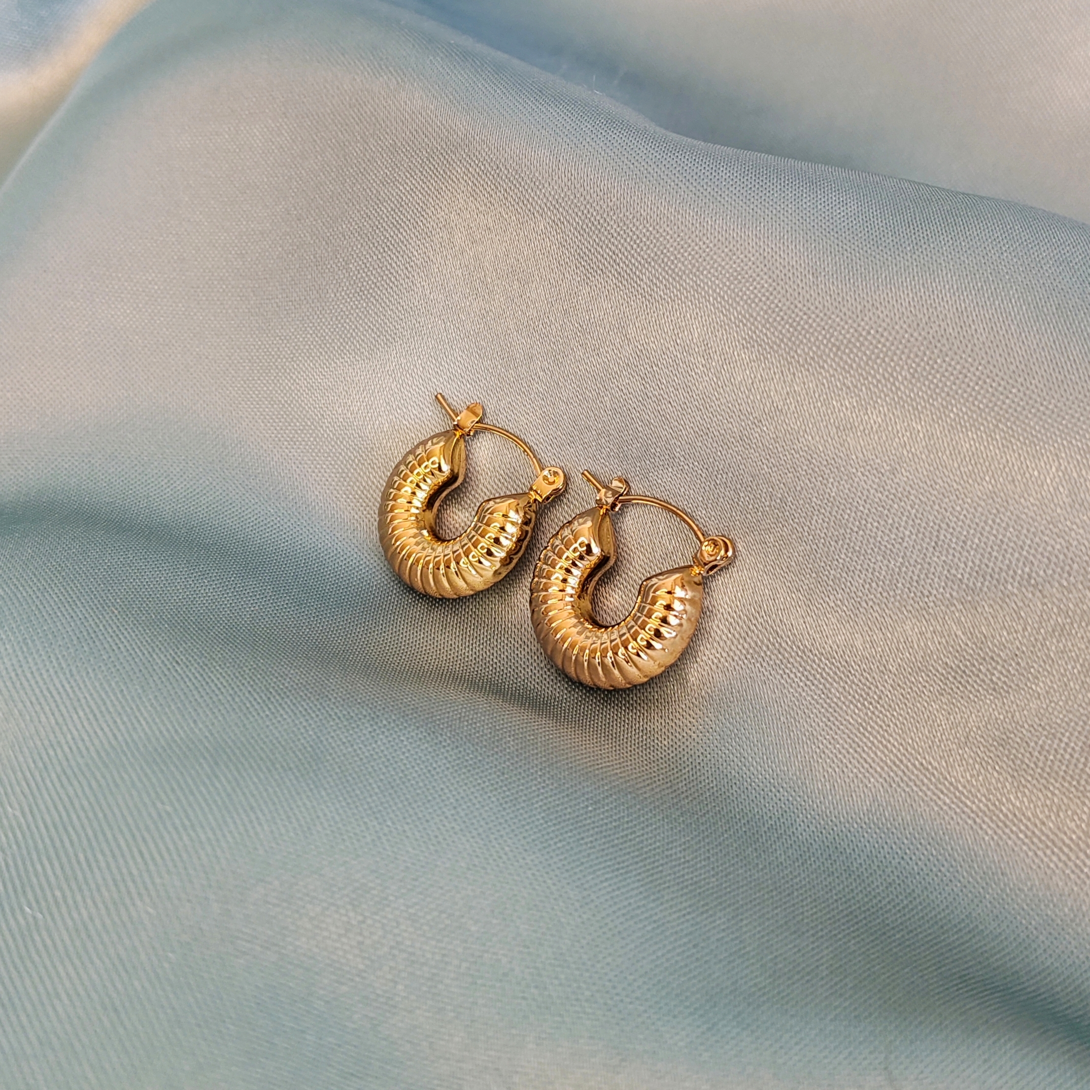 Refined yet bold, these textured gold-plated hoops are a staple for effortless elegance. Designed for everyday wear, their intricate detailing catches the light beautifully, making them a go-to for any occasion.