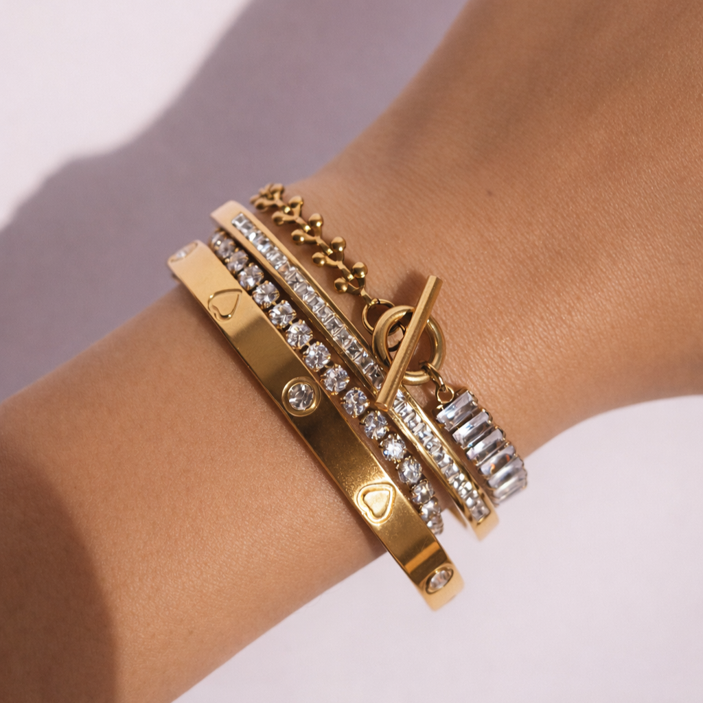 Crystal-Studded Gold Bracelet