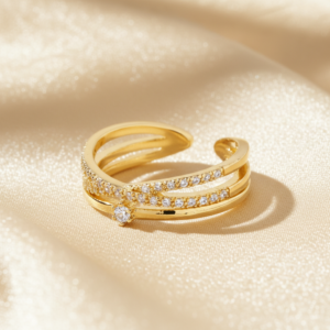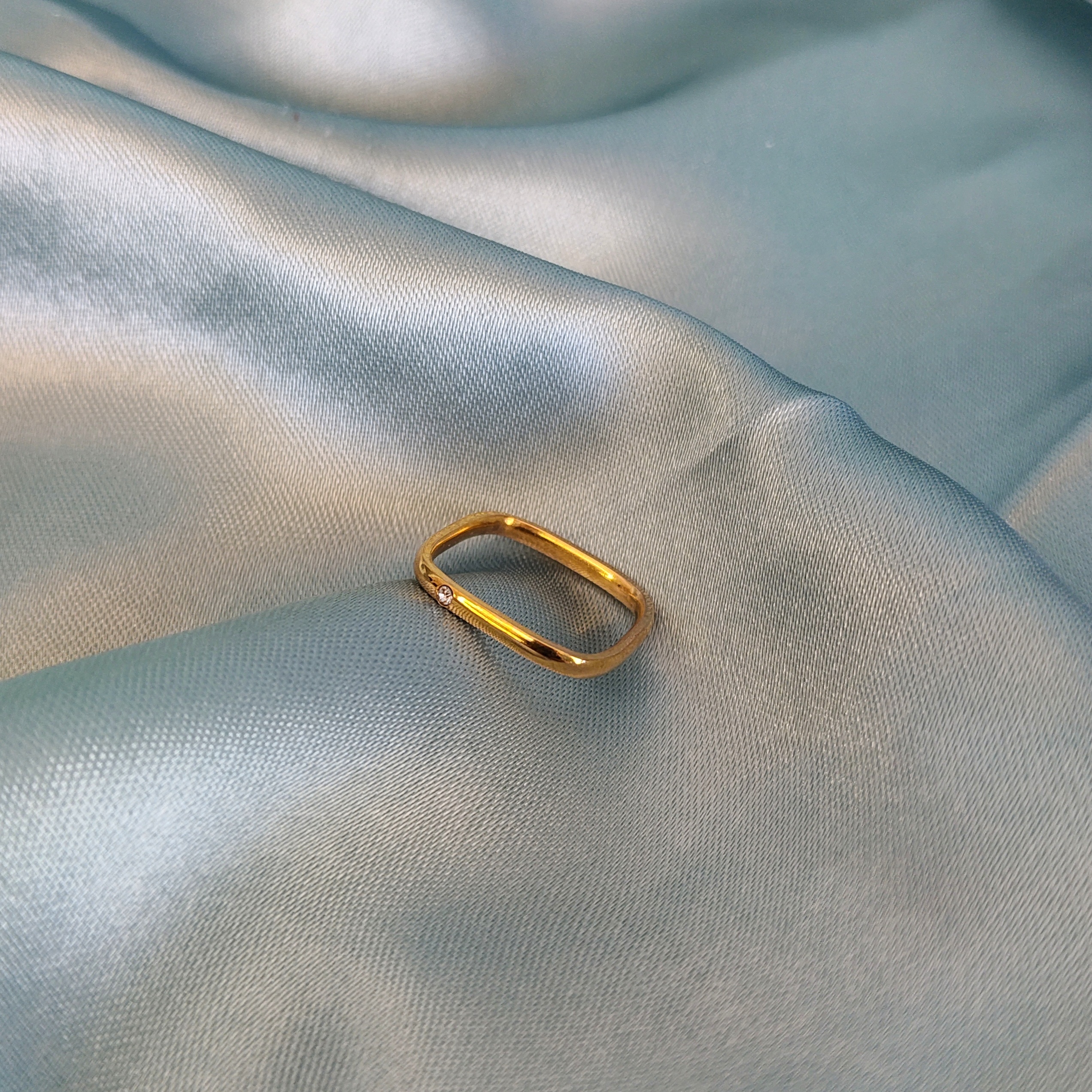 A sleek gold-plated square band ring finished with a subtle crystal accent. Minimal, versatile, and designed for effortless everyday wear.