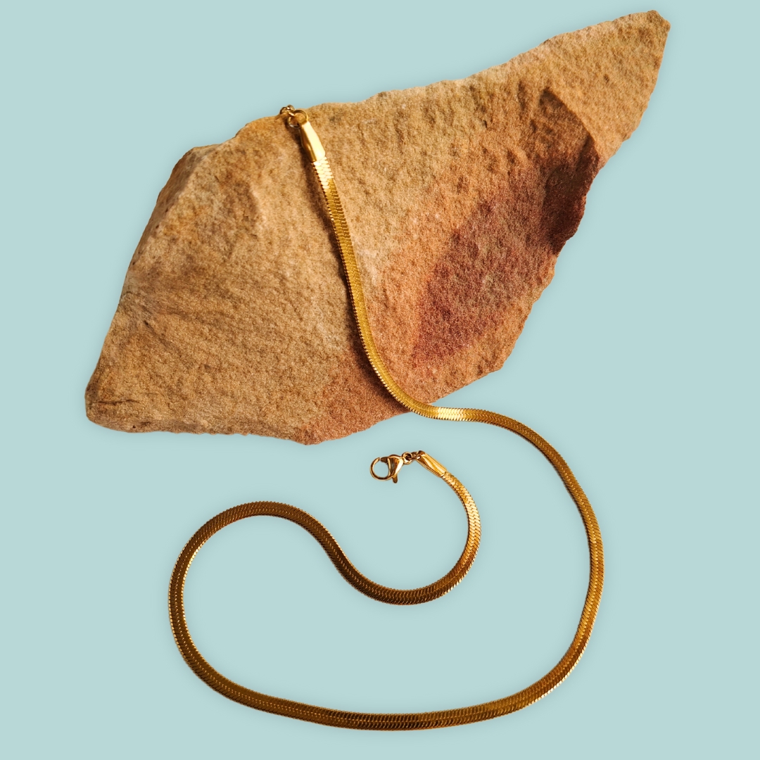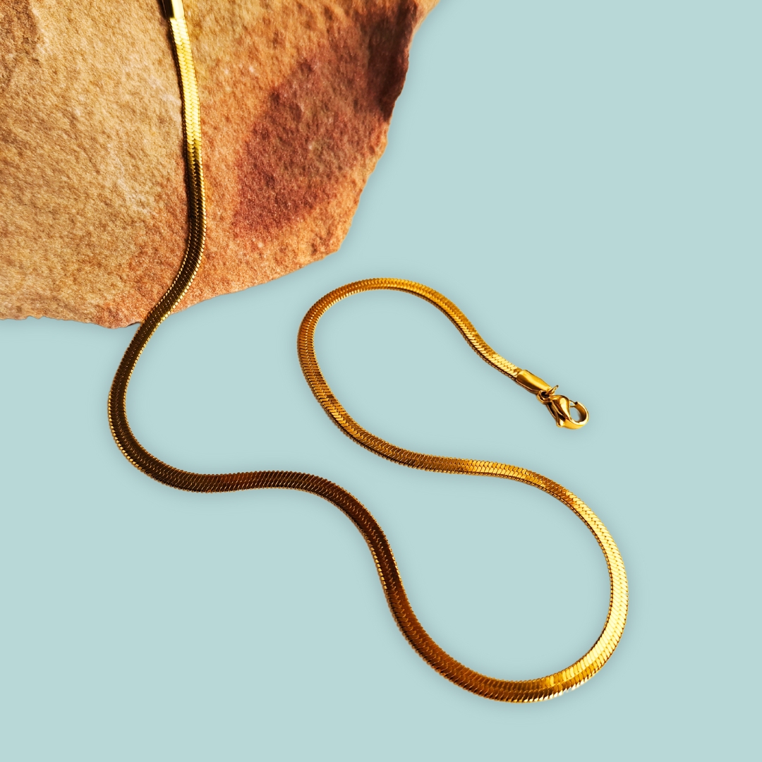 The Golden Snake Chain Necklace is a sleek and versatile piece that adds effortless elegance to any outfit. Featuring a smooth, flat snake chain design, it’s crafted with anti-tarnish, long-lasting gold plating to ensure durability and lasting brilliance. Perfect for layering or wearing solo, this lightweight and timeless necklace transitions seamlessly from casual to formal looks. A must-have addition to your jewelry collection for everyday sophistication.