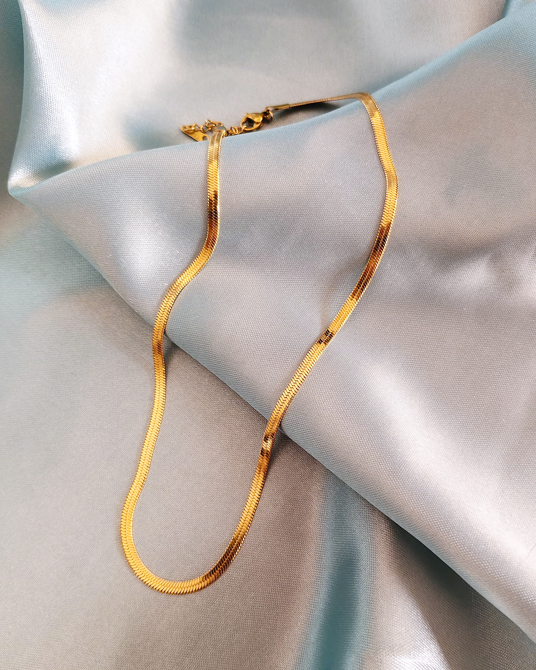Sleek gold-plated snake chain with a smooth, fluid finish