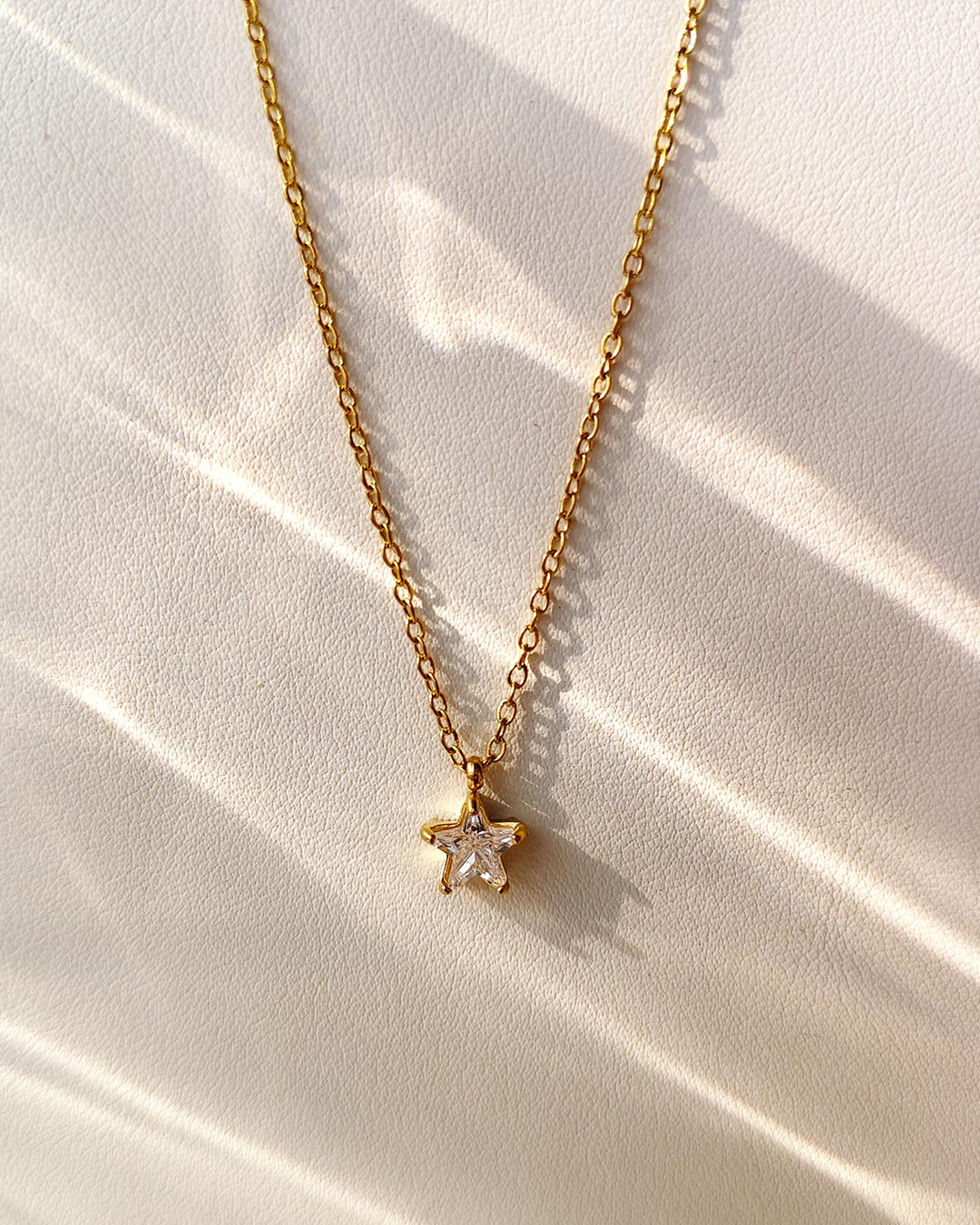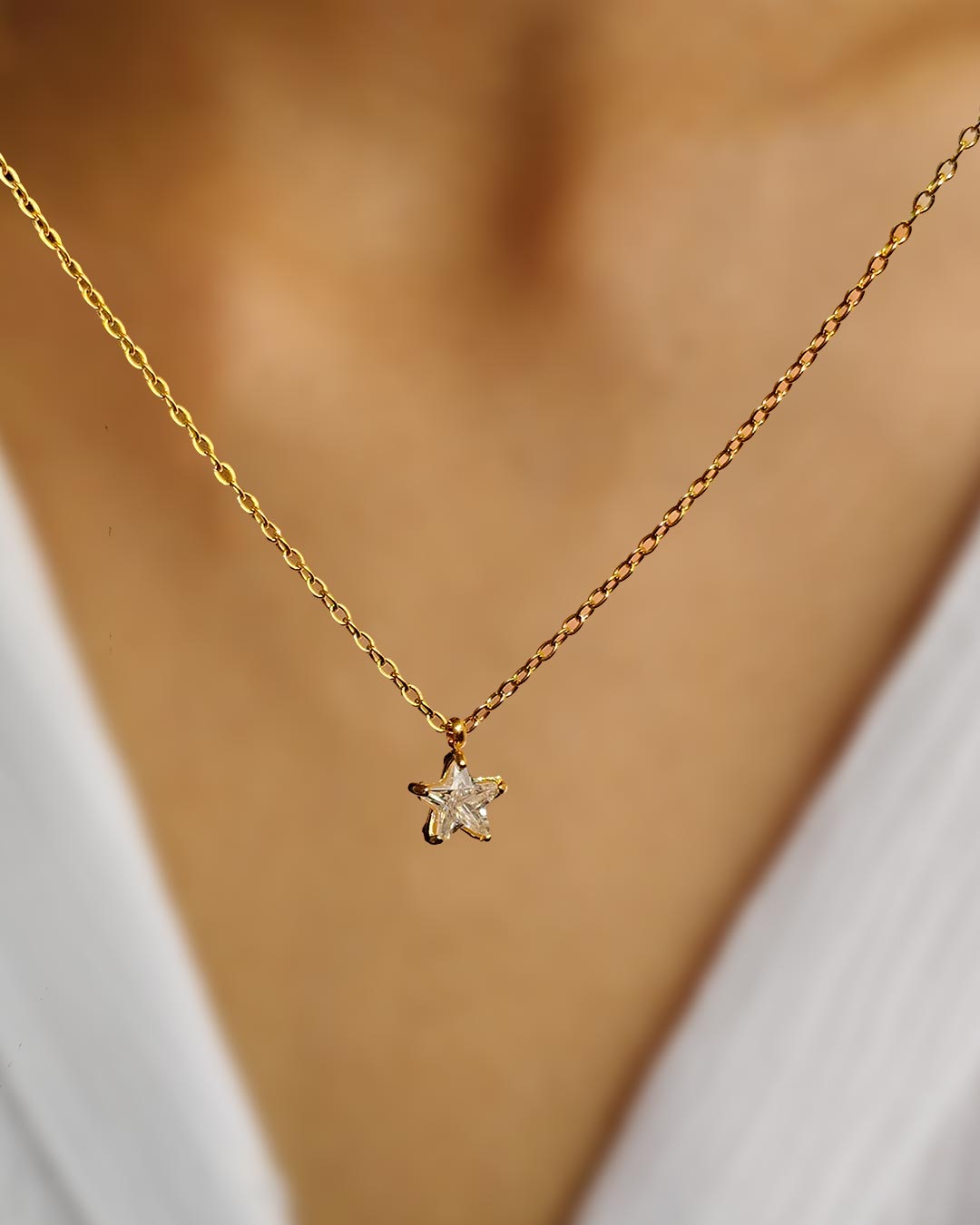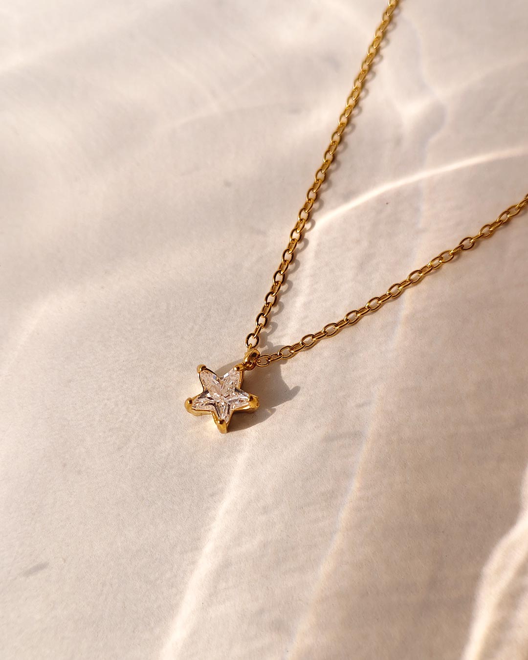 This beautiful necklace has a pendant which is that of a delicate tine star.