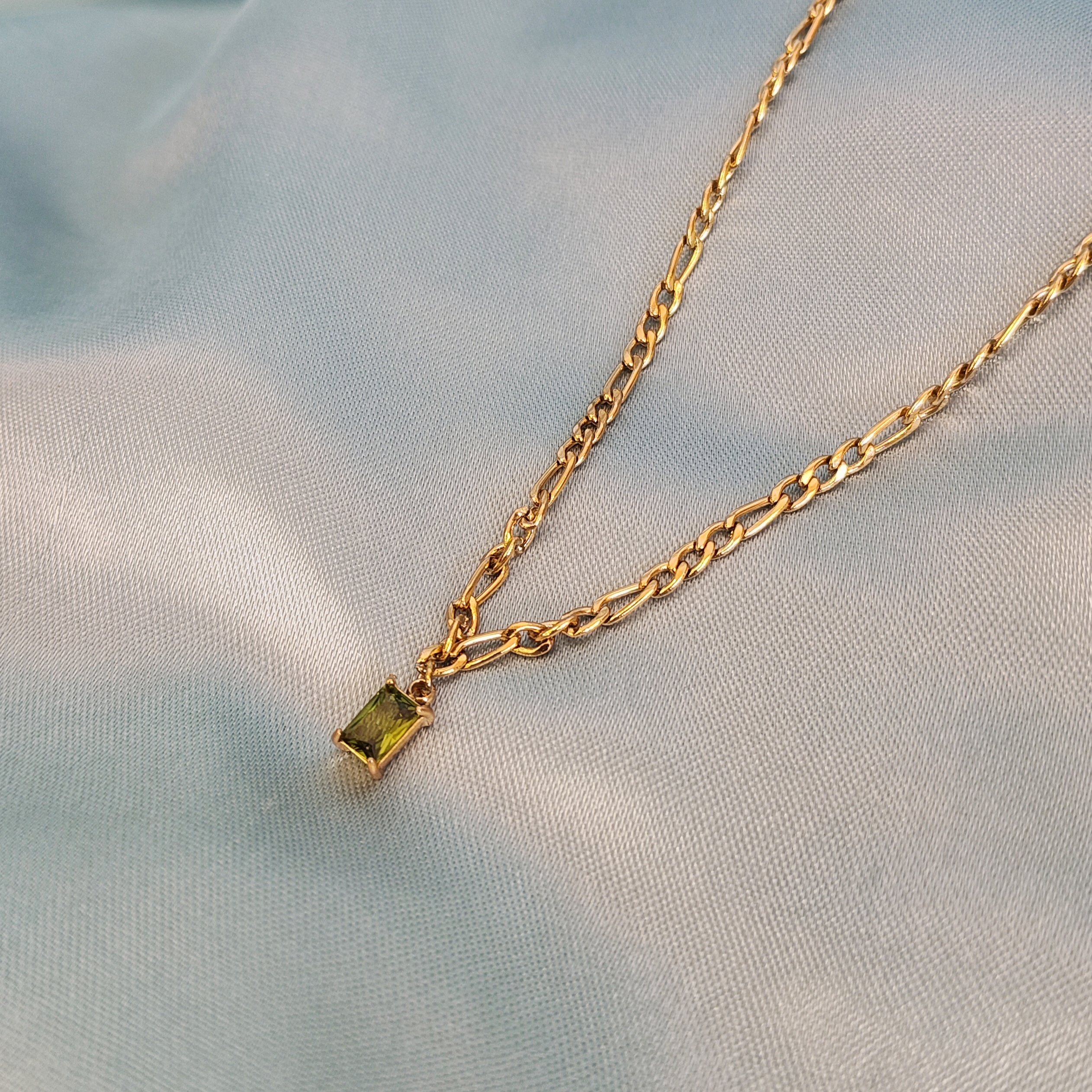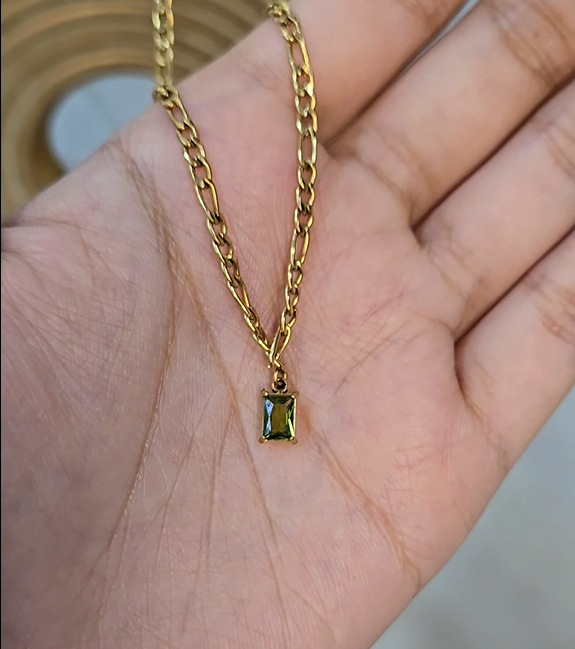 The Enchained Emerald Necklace is designed with a bold yet refined chain, perfectly complementing the green gemstone pendant. The intricate link design adds a modern touch, while the anti-tarnish finish ensures long-lasting brilliance. Whether worn alone or layered, this piece effortlessly blends classic charm with contemporary elegance, making it a must-have in any jewelry collection.