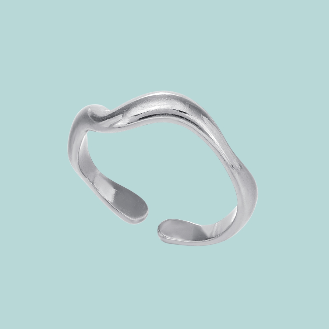 A sleek, wave-inspired design crafted from stainless steel. This adjustable silver ring adds a subtle yet chic statement to any look, perfect for effortless style lovers.